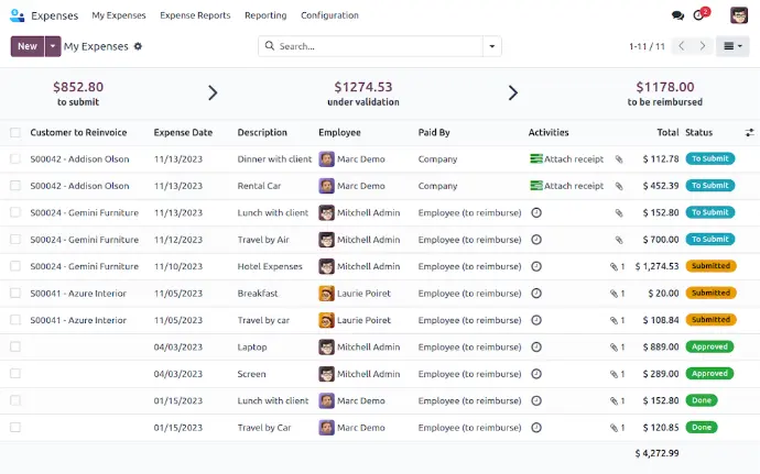 With the Odoo Expenses app, managing employee spending has never been easier.
