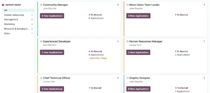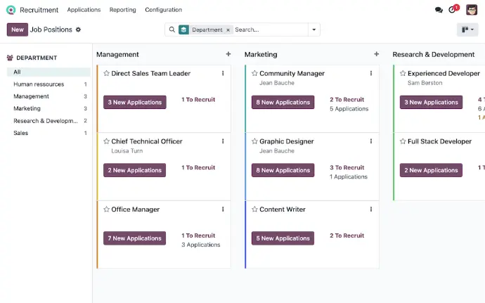 Easily build and manage your job board with Odoo Recruitment.Create job positions, publish vacancies online, and track every application from a single, unified dashboard.Maintain a full database of candidate profiles, indexed documents, resumes, and skills making your hiring smarter and faster.